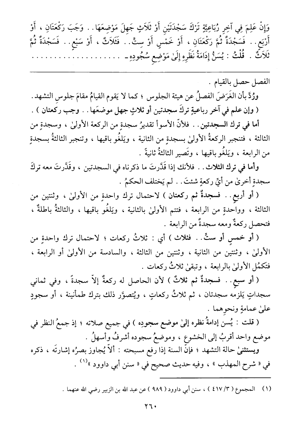 (١) المجموع (٣/ ٤١٧)، سنن أبي داوود (٩٨٩) عن عبد الله بن الزبير رضي الله عنهما.