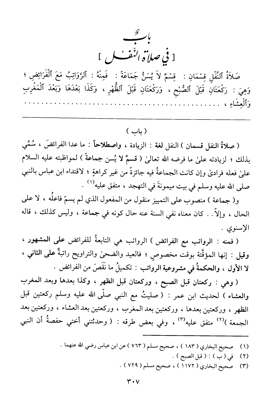 (١) صحيح البخاري (١٨٣)، صحيح مسلم (٧٦٣) عن ابن عباس رضي الله عنهما.
