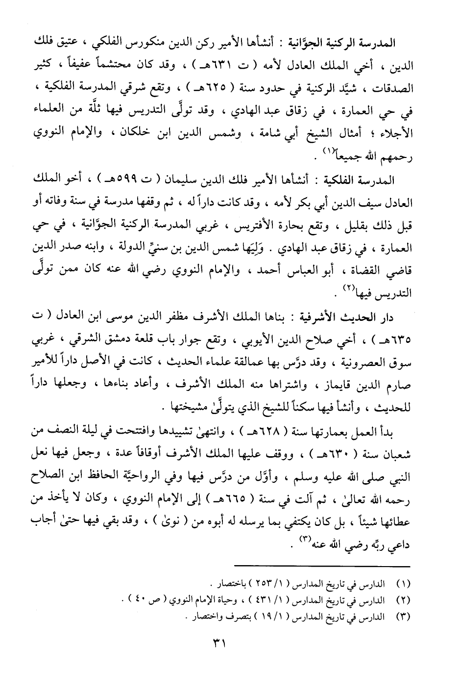 (٢) الدارس في تاريخ المدارس (١/ ٤٣١)، وحياة الإمام النووي (ص ٤٠).