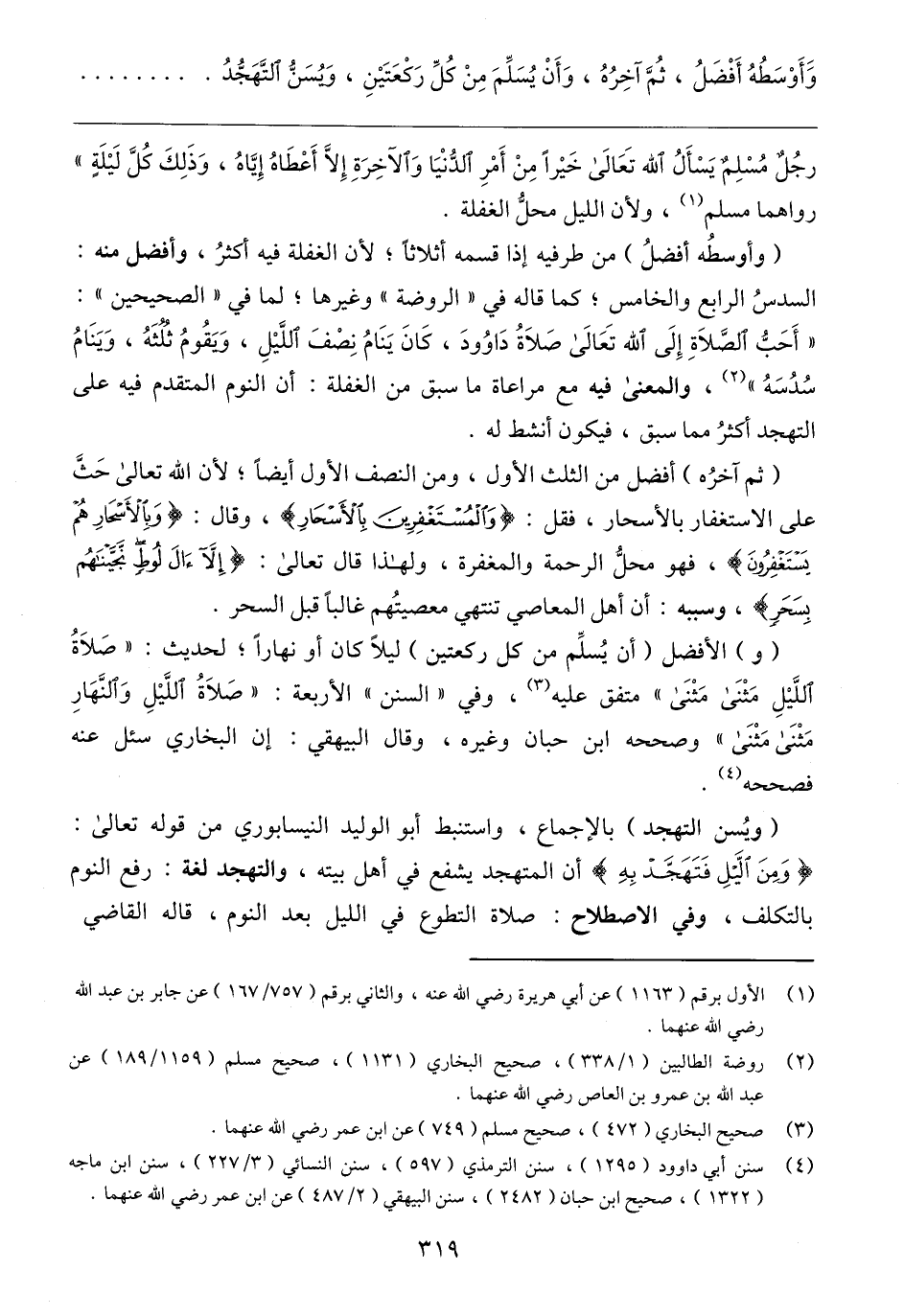 (٢) روضة الطالبين (١/ ٣٣٨)، صحيح البخاري (١١٣١)، صحيح مسلم (١١٥٩/ ١٨٩) عن عبد الله بن عمرو بن العاص رضي الله عنهما.