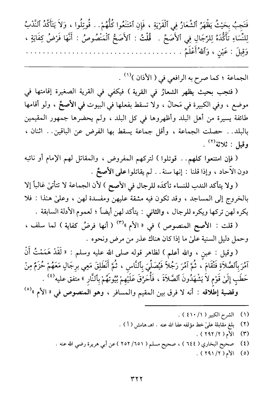 (وقيل: عينٍ، والله أعلم) لظاهر قوله صلى الله عليه وسلم: "لَقَدْ هَمَمْتُ أَنْ آمُرَ بِالصَّلَاةِ فَتمامَ، ثُمَّ آمُرَ رَجُلًا فَيُصَلِّيَ بِالنَّاسِ، ثمَّ أَنْطَلِقَ مَعِي برِجَالٍ مَعَهُمْ حُزَمٌ مِنْ حَطَبٍ إِلَى قَوْمٍ لَا يَشْهَدُونَ الصَّلَاةَ، فَأُحَرِّقَ عَلَيْهِمْ بُيُوتَهُمْ بِالنَّارِ" متفق عليه (٤).