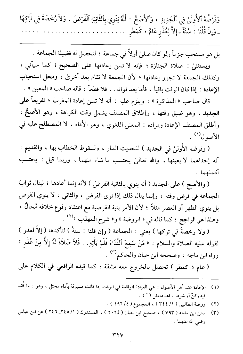 (٢) روضة الطالبين (١/ ٣٤٤)، المجموع (٤/ ١٩٦).