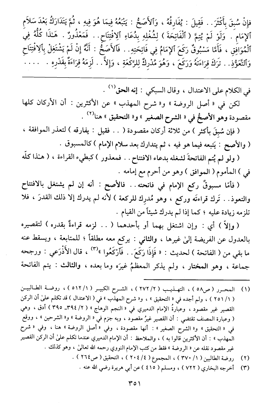 (٢) روضة الطالبين (١/ ٣٧٠)، المجموع (٤/ ٢٠٤)، التحقيق (ص ٢٦٤).