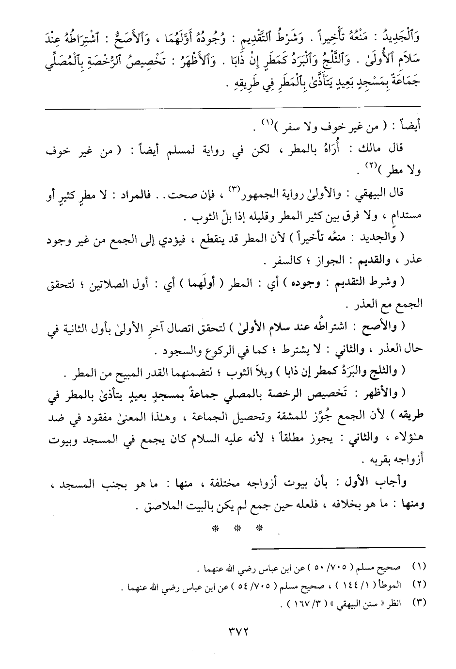 (٢) الموطأ (١/ ١٤٤)، صحيح مسلم (٧٠٥/ ٥٤) عن ابن عباس رضي الله عنهما.