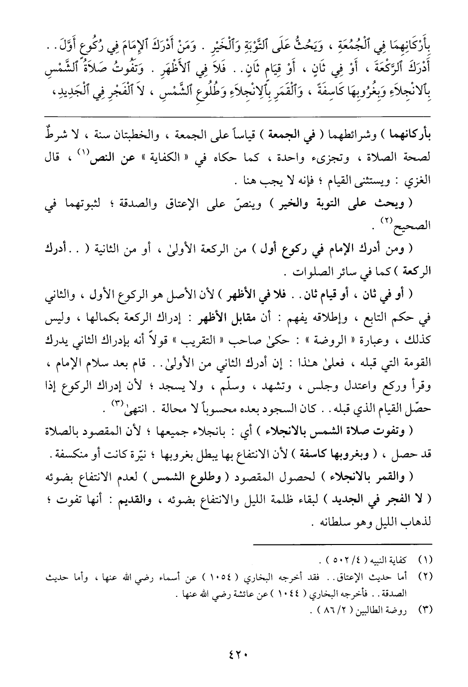 (وتفوت صلاة الشمس بالانجلاء) أي: بانجلاء جميعها؛ لأن المقصود بالصلاة قد حصل، (وبغروبها كاسفة) لأن الانتفاع بها يبطل بغروبها؛ نيّرة كانت أو منكسفة.