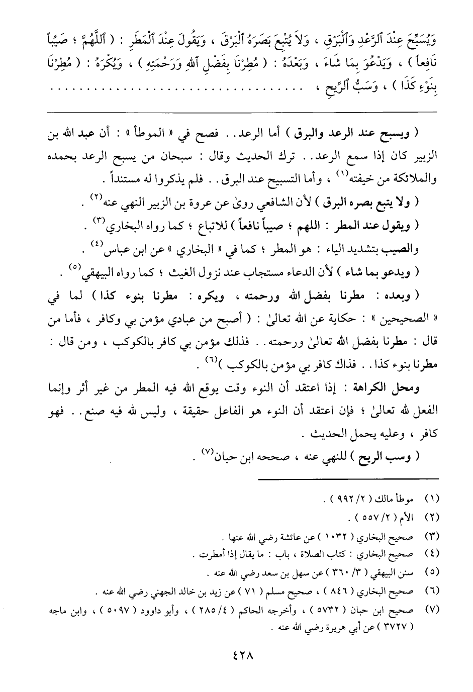 (٤) صحيح البخاري: كتاب الصلاة، باب: ما يقال إذا أمطرت.