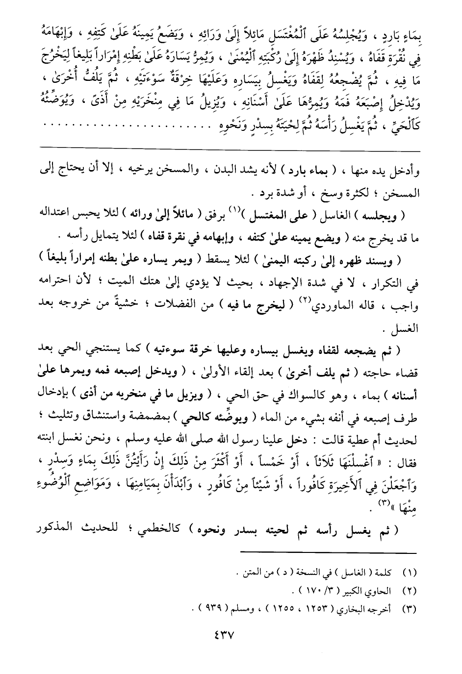 (١) كلمة (الغاسل) في النسخة (د) من المتن.