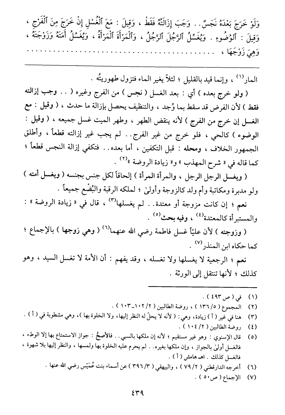 (٥) قال الإسنوي: وهو غير مستقيم، لأنه إن ملكها بالسبي .. فالأصحُّ: جواز الاستمتاع بها إلا الوطء، فالغسل أولى بالجواز، وإن ملكها بغيره .. لم يحرم عليه الخلوة بها ولمسها، والنظر إليها بلا شهوة، فالغسل كذلك. اهـ هامش (أ).