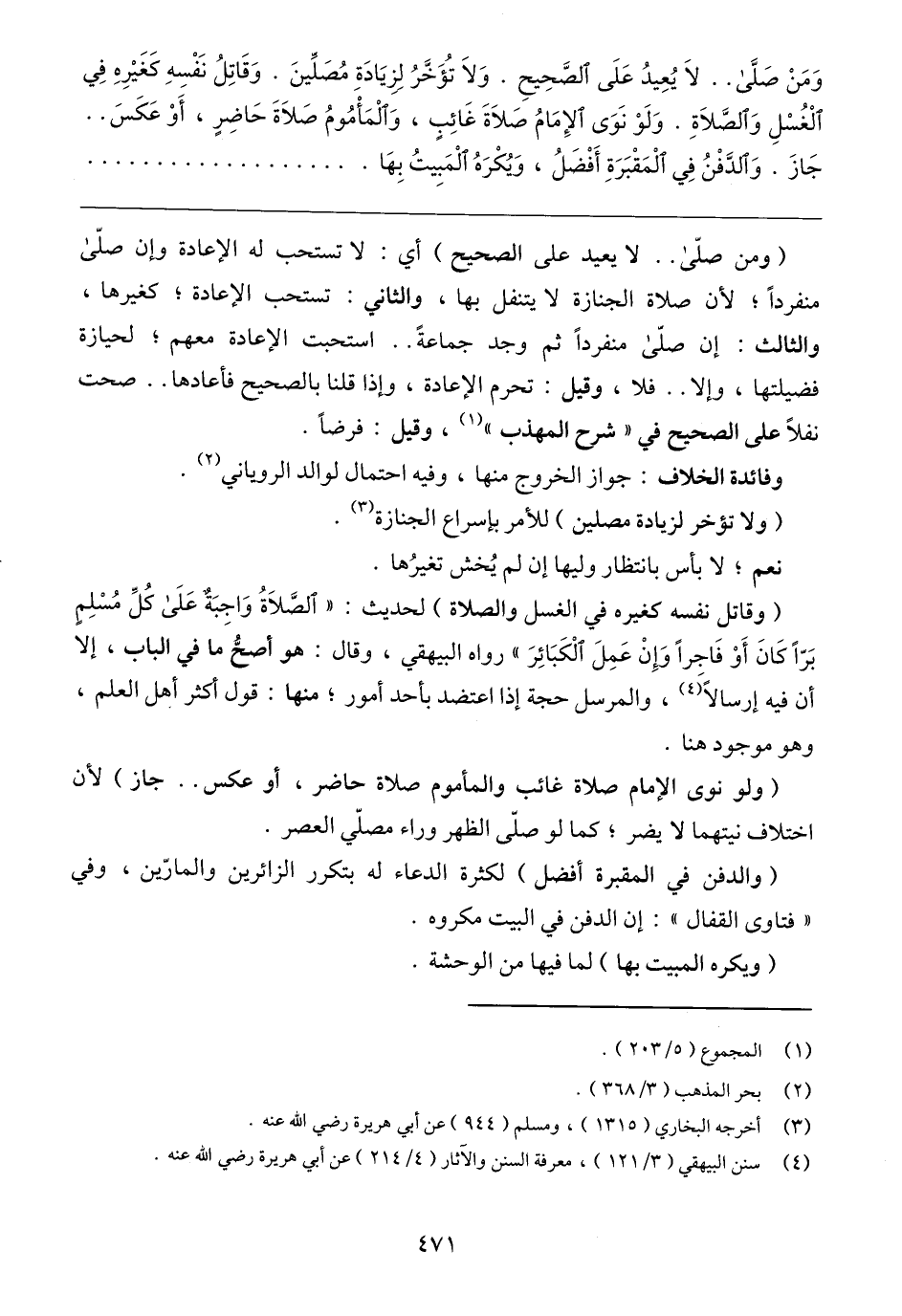 (٤) سنن البيهقي (٣/ ١٢١)، معرفة السنن والآثار (٤/ ٢١٤) عن أبي هريرة رضي الله عنه.