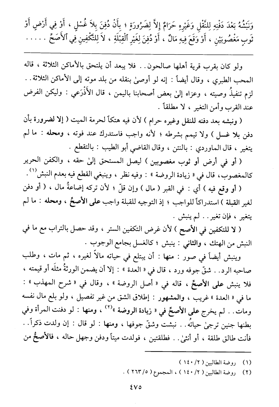 (٢) روضة الطالبين (٢/ ١٤٠)، المجموع (٥/ ٢٦٣).