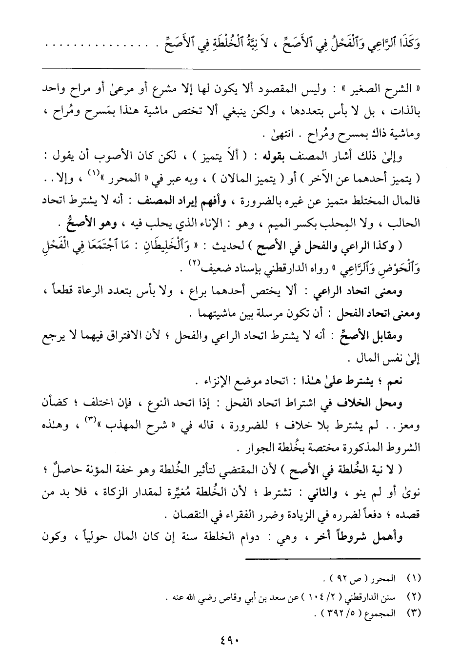 "الشرح الصغير": وليس المقصود ألا يكون لها إلا مشرع أو مرعى أو مراح واحد بالذات، بل لا بأس بتعددها, ولكن ينبغي ألا تختص ماشية هذا بمَسرح ومُراح، وماشية ذاك بمسرح ومُراح. انتهى.