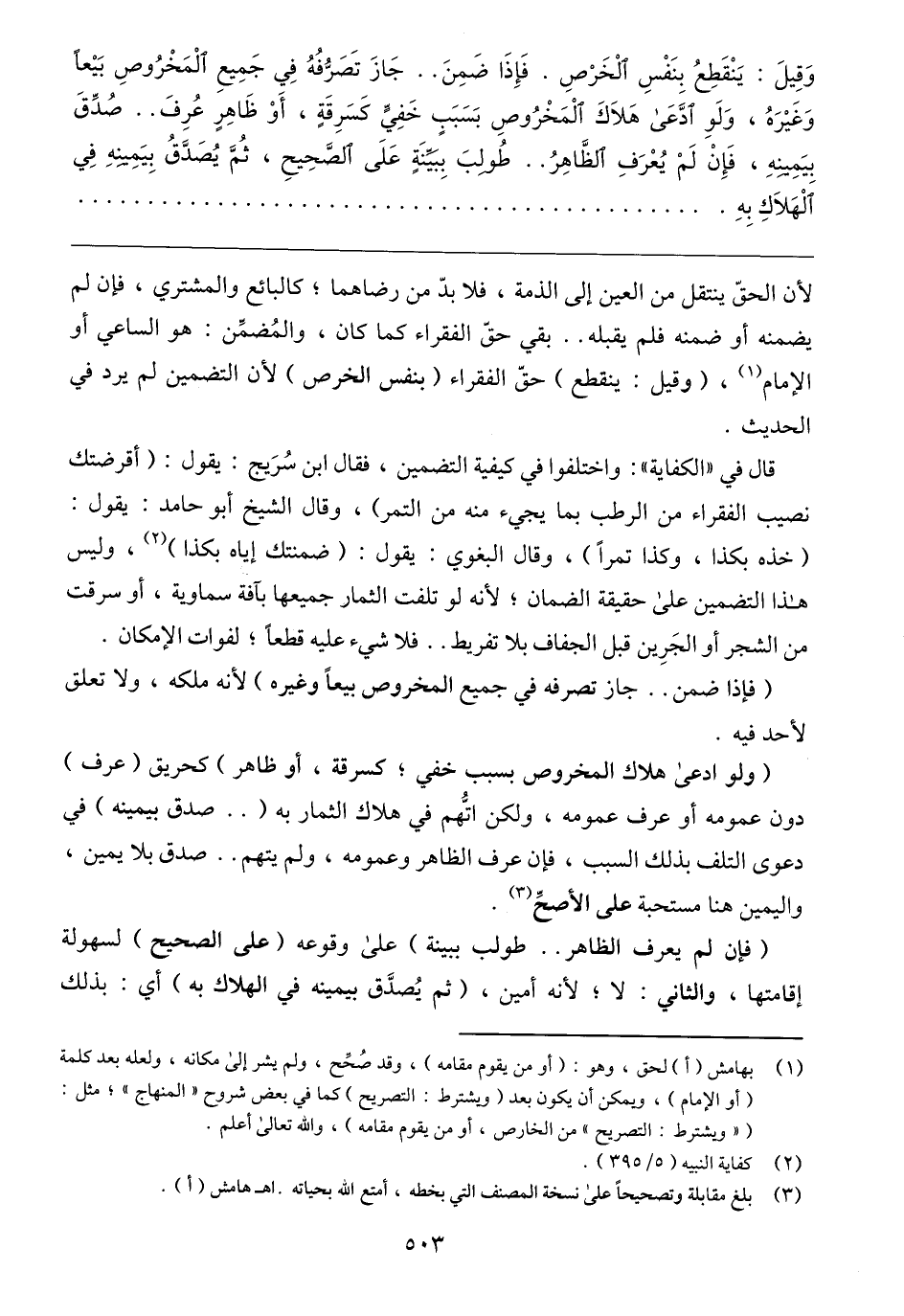 (١) بهامش (أ) لحق، وهو: (أو من يقوم مقامه)، وقد صحِّح، ولم يشر إلى مكانه، ولعله بعد كلمة (أو الإمام)، ويمكن أن يكون بعد (ويشترط: التصريح) كما في بعض شروح "المنهاج"؛ مثل: ("ويشترط: التصريح" من الخارص، أو من يقوم مقامه)، والله تعالى أعلم.