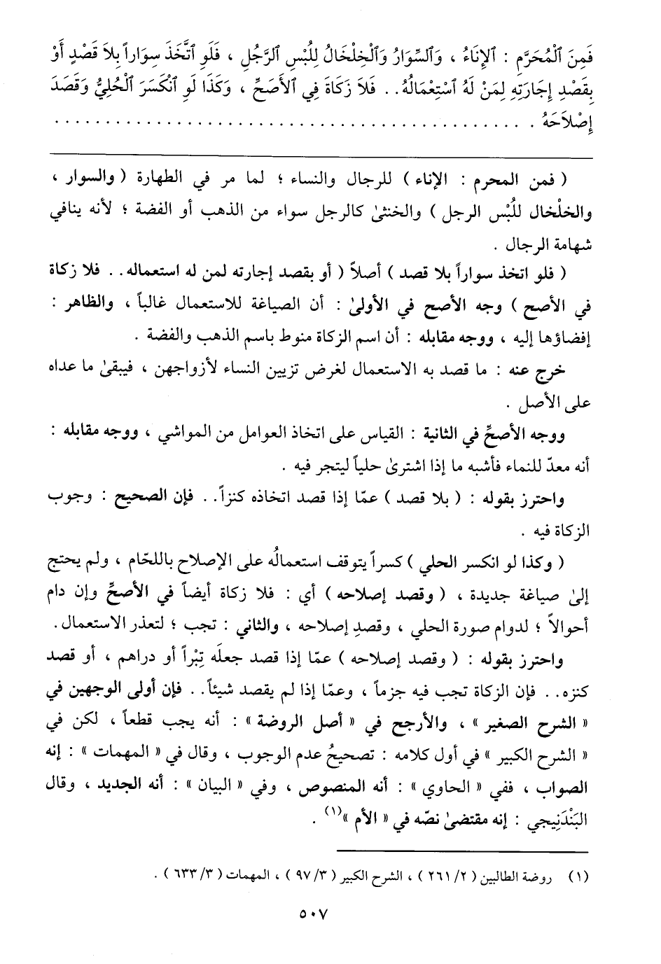 واحترز بقوله: (وقصد إصلاحه) عمّا إذا قصد جعلَه تِبْرًا أو دراهم، أو قصد كنزه .. فإن الزكاة تجب فيه جزمًا، وعمّا إذا لم يقصد شيئًا .. فإن أولى الوجهين في "الشرح الصغير"، والأرجح في "أصل الروضة": أنه يجب قطعًا، لكن في "الشرح الكبير" في أول كلامه: تصحيحُ عدم الوجوب، وقال في "المهمات": إنه الصواب، ففي "الحاوي": أنه المنصوص، وفي "البيان": أنه الجديد، وقال البَنْدَنِيجي: إنه مقتضى نصّه في "الأم" (١).
