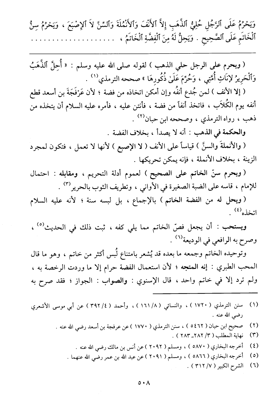 (ويحرم على الرجل حلي الذهب) لقوله صلى الله عليه وسلم: "أُحِلَّ الذَّهَبُ وَالْحَرِيرُ لإنَاثِ أُمَّتِي، وَحُرِّمَ عَلَى ذُكُورِهَا" صححه الترمذي (١).