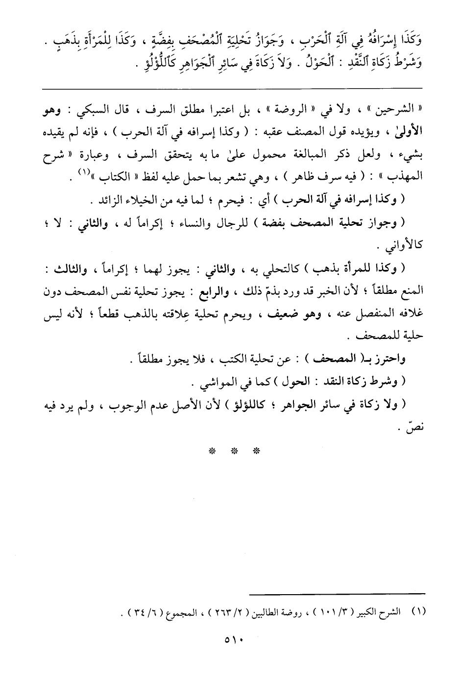 "الشرحين"، ولا في "الروضة"، بل اعتبرا مطلق السرف، قال السبكي: وهو الأولى، ويؤيده قول المصنف عقبه: (وكذا إسرافه في آلة الحرب)، فإنه لم يقيده بشيء، ولعل ذكر المبالغة محمول على ما به يتحقق السرف، وعبارة "شرح المهذب": (فيه سرف ظاهر)، وهي تشعر بما حمل عليه لفظ "الكتاب" (١).