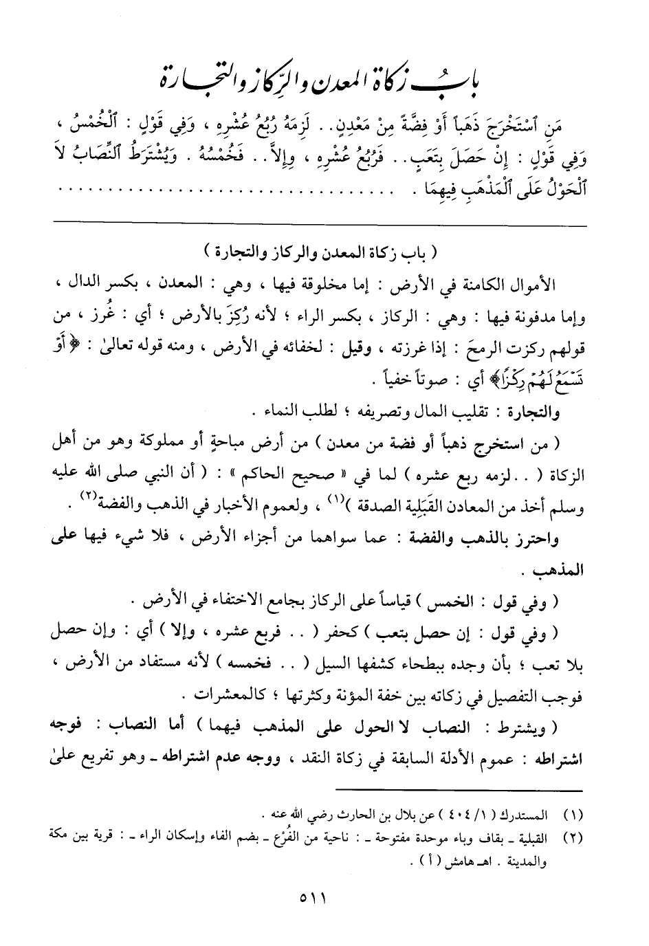 (باب زكاة المعدن والركاز والتجارة)