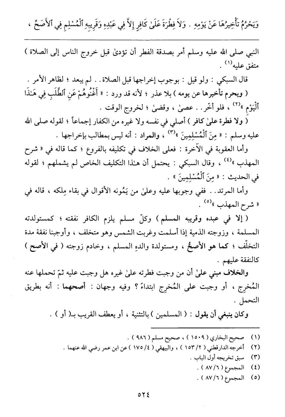قال السبكي: ولو قيل: بوجوب إخراجها قبل الصلاة .. لم يبعد؛ لظاهر الأمر.