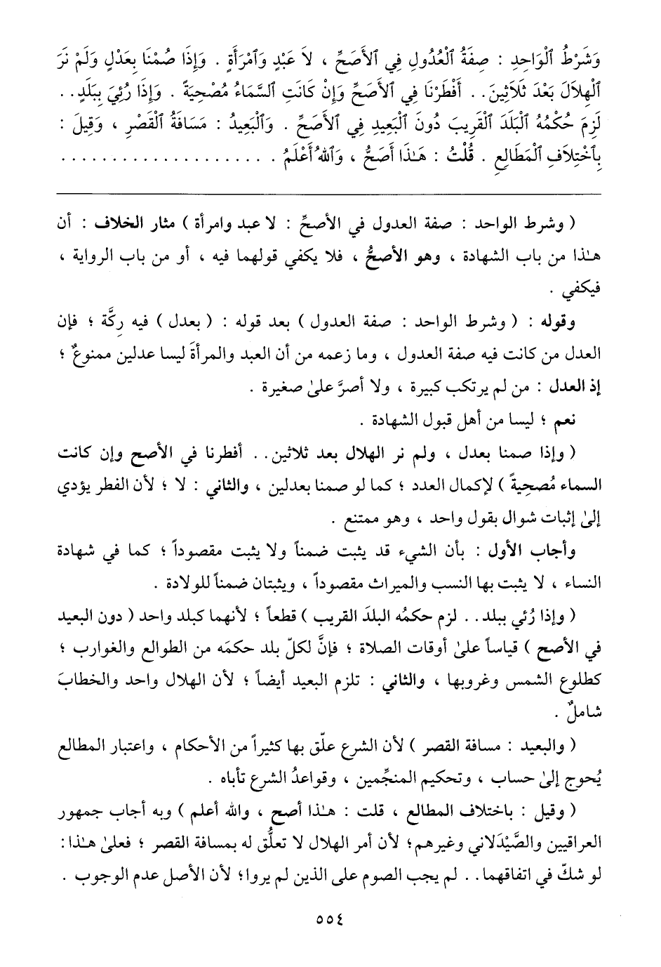 (والبعيد: مسافة القصر) لأن الشرع علّق بها كثيرًا من الأحكام، واعتبار المطالع يُحوج إلي حساب، وتحكيم المنجِّمين، وقواعدُ الشرع تأباه.