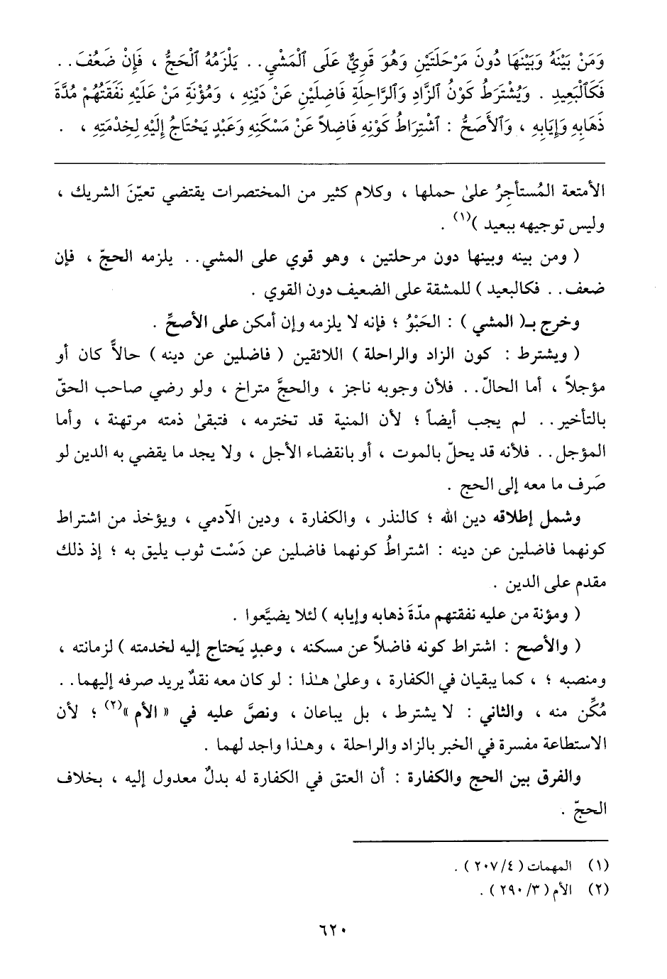 (والأصح: اشتراط كونه فاضلًا عن مسكنه، وعبدٍ يَحتاج إليه لخدمته) لزمانته، ومنصبه؛ ، كما يبقيان في الكفارة، وعلى هذا: لو كان معه نقا يريد صرفه إليهما .. مُكِّن منه، والثاني: لا يشترط، بل يباعان، ونصَّ عليه في "الأم" (٢)؛ لأن الاستطاعة مفسرة في الخبر بالزاد والراحلة، وهذا واجد لهما.