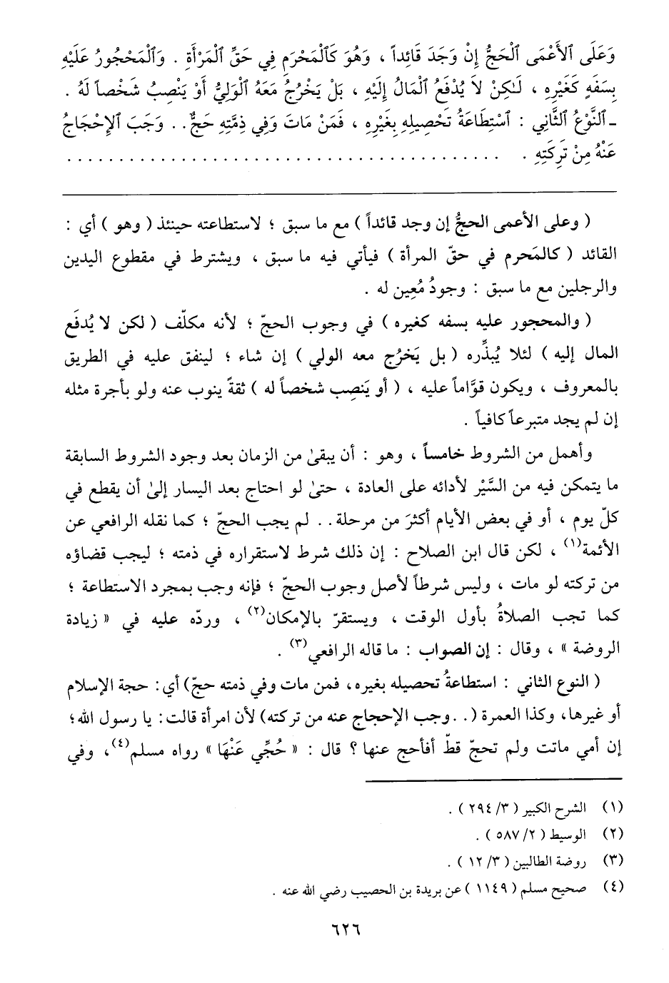 وأهمل من الشروط خامسًا، وهو: أن يبقى من الزمان بعد وجود الشروط السابقة ما يتمكن فيه من السَّيْر لأدائه على العادة، حتى لو احتاج بعد اليسار إلى أن يقطع في كلّ يوم، أو في بعض الأيام أكثرَ من مرحلة .. لم يجب الحجّ؛ كما نقله الرافعي عن الأئمة (١)، لكن قال ابن الصلاح: إن ذلك شرط لاستقراره في ذمته؛ ليجب قضاؤه من تركته لو مات، وليس شرطًا لأصل وجوب الحجّ؛ فإنه وجب بمجرد الاستطاعة؛ كما تجب الصلاةُ بأول الوقت، ويستقرّ بالإمكان (٢)، وردّه عليه في "زيادة الروضة"، وقال: إن الصواب: ما قاله الرافعي (٣).