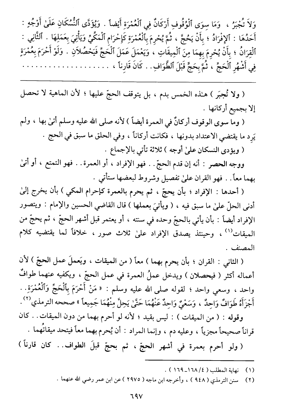 ووجه الحصر: أنه إن قدم الحجّ .. فهو الإفراد، أو العمرة .. فهو التمتع، أو أتى بهما معًا .. فهو القران على تفصيل وشروط لبعضها ستأتي.