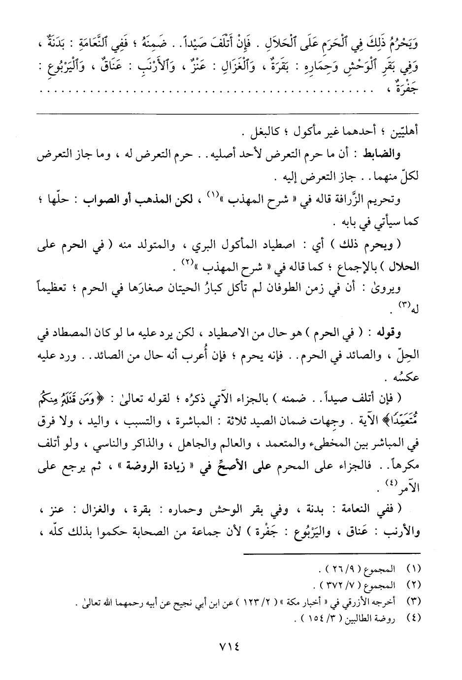 (ويحرم ذلك) أي: اصطياد المأكول البري، والمتولد منه (في الحرم على الحلال) بالإجماع؛ كما قاله في "شرح المهذب" (٢).