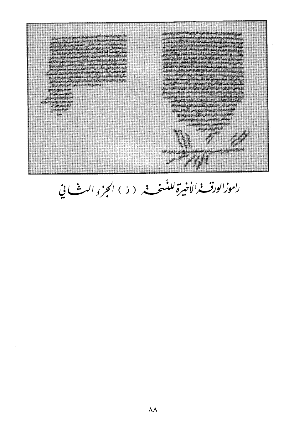 راموز الورقة الأخيرة للنُّسخة (ز) الجزء الثاني