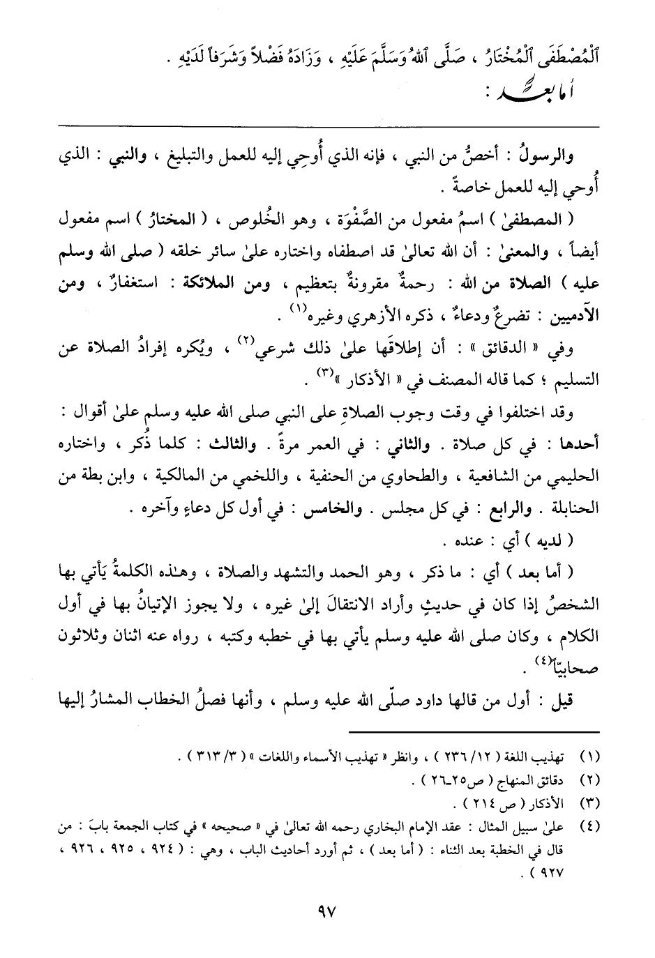 (٢) دقائق المنهاج (ص ٢٥ - ٢٦).