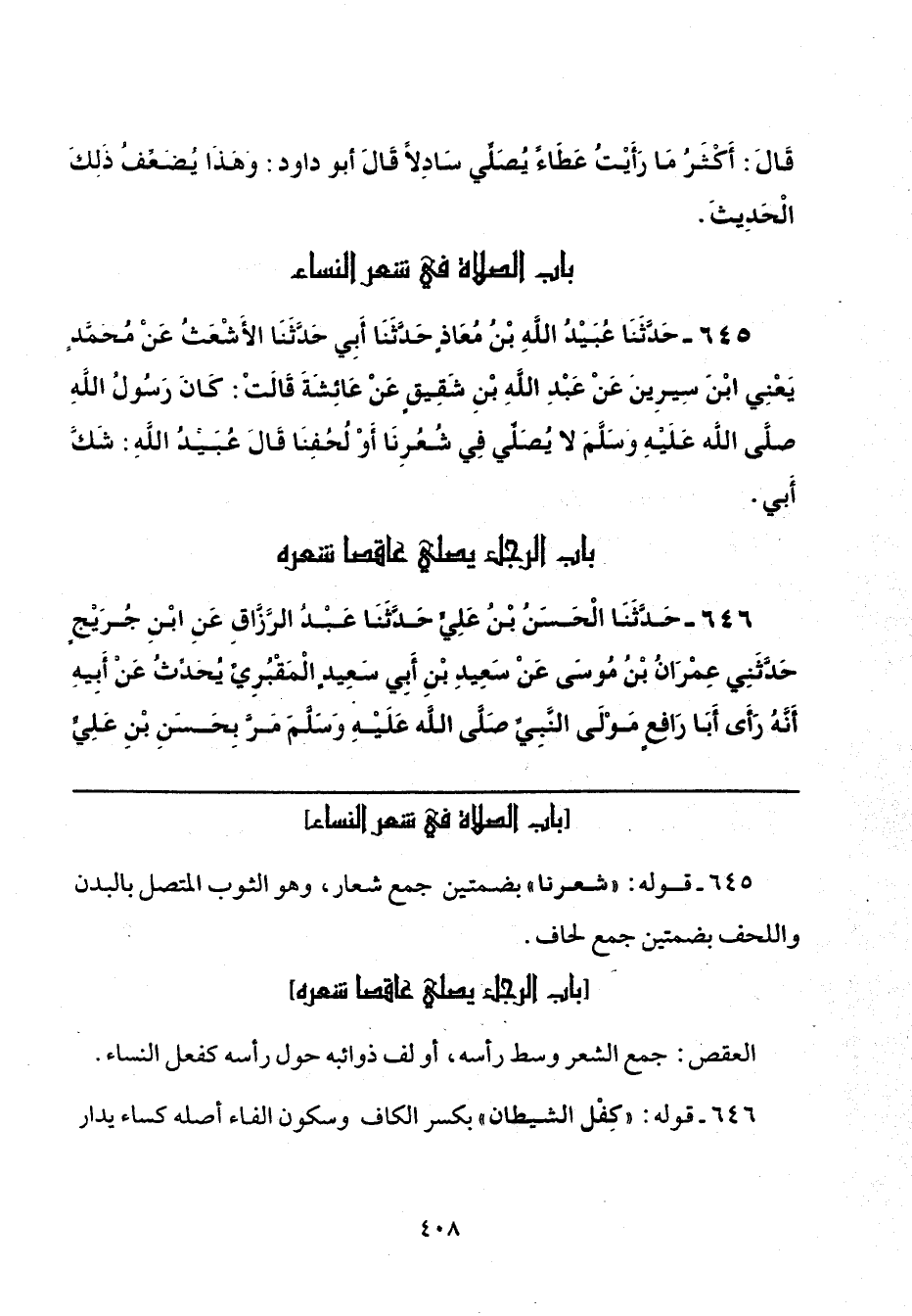 645 - حَدَّثَنَا عُبَيْدُ اللَّهِ بْنُ مُعَاذٍ، حَدَّثَنَا أَبِي، حَدَّثَنَا الْأَشْعَثُ، عَنْ مُحَمَّدٍ يَعْنِي ابْنَ سِيرِينَ، عَنْ عَبْدِ اللَّهِ بْنِ شَقِيقٍ، عَنْ عَائِشَةَ، قَالَتْ: كَانَ رَسُولُ اللَّهِ صَلَّى اللهُ عَلَيْهِ وَسَلَّمَ «لَا يُصَلِّي فِي شُعُرِنَا أَوْ لُحُفِنَا»، قَالَ عُبَيْدُ اللَّهِ: شَكَّ أَبِي.