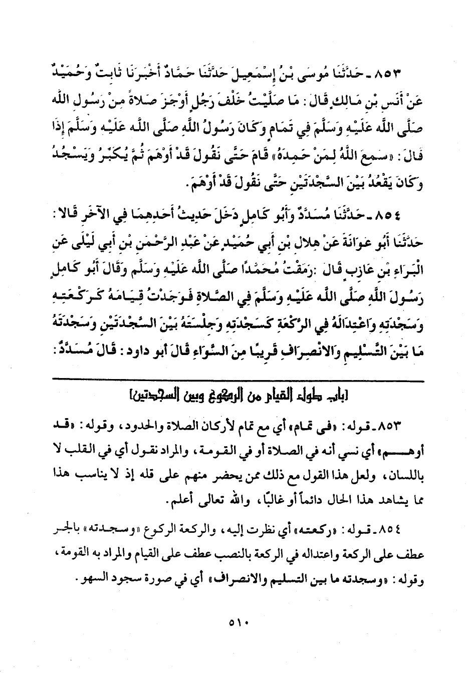 بَابُ طُولِ الْقِيَامِ مِنَ الرُّكُوعِ وَبَينَ السَّجْدَتَينِ
