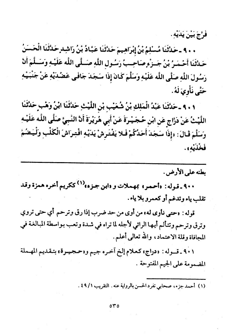 900 - قوله: "أحمر" بمهملات و "ابن جزء" (¬1) ككريم آخره همزة وقد تقلب ياء وتدغم أو كعمرو بلا ياء.