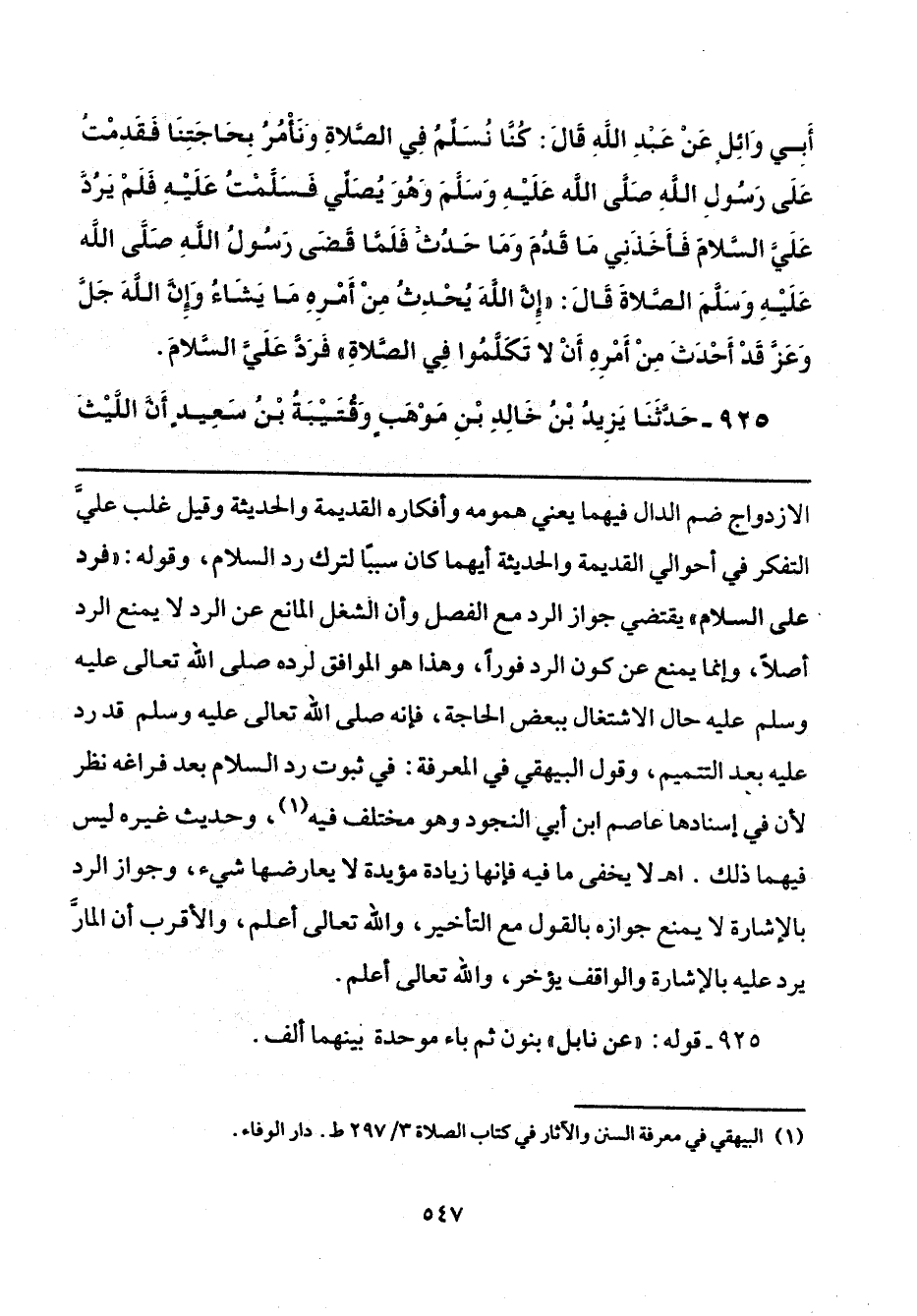 (¬1) البيهقي في معرفة السنن والآثار في كتاب الصَّلاة 3/ 297 ط. دار الوفاء.