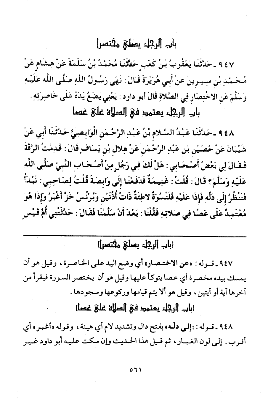 947 - قوله: "عن الاختصار" أي وضع اليد على الخاصرة، وقيل هو أن يمسك بيده مخصرة أي عصا يتوكأ عليها وقيل هو أن يختصر السورة فيقرأ من آخرها آية أو آيتين، وقيل هو ألا يتم قيامها وركوعها وسجودها.