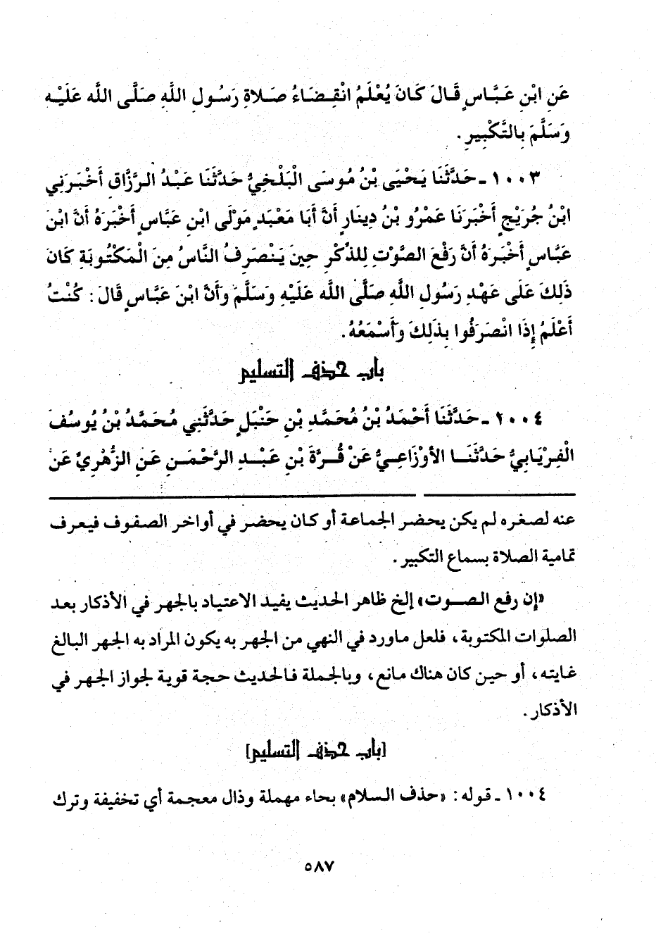 "إن رفع الصوت" إلخ ظاهر الحديث يفيد الاعتياد بالجهر في الأذكار بعد الصلوات المكتوبة، فلعل ما ورد في النهي من الجهر به يكون المراد به الجهر البالغ غايته، أو حين كان هناك مانع، وبالجملة فالحديث حجة قوية لجواز الجهر في الأذكار.
