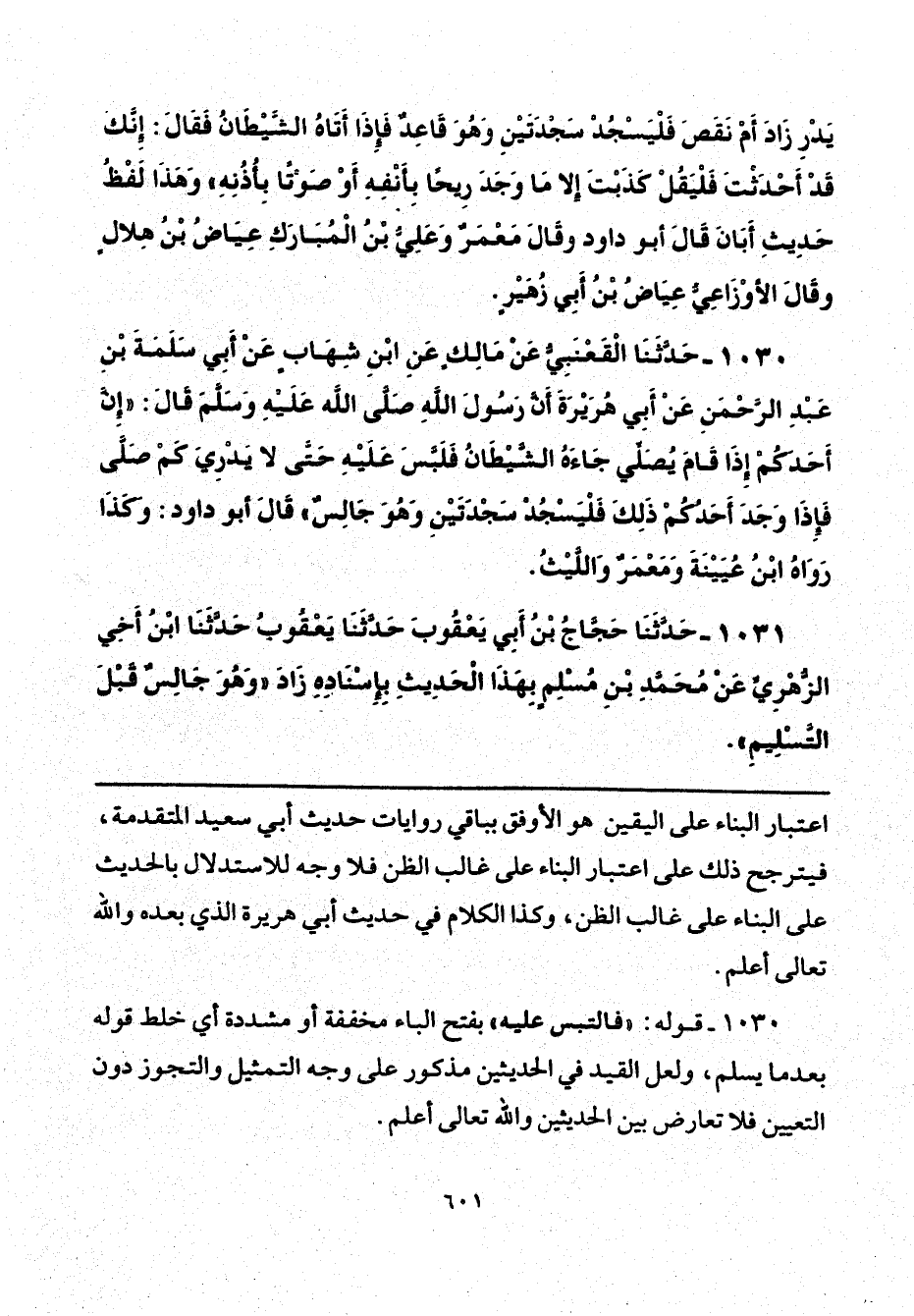 1031 - حَدَّثَنَا حَجَّاجُ بْنُ أَبِي يَعْقُوبَ، حَدَّثَنَا يَعْقُوبُ، حَدَّثَنَا ابْنُ أَخِي الزُّهْرِيِّ، عَنْ مُحَمَّدِ بْنِ مُسْلِم، بِهَذَا الْحَدِيثِ بِإِسْنَادِهِ زَادَ وَهُوَ جَالِسٌ قَبْلَ التَّسْلِيمِ.