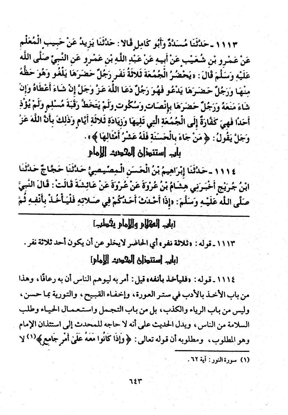 1113 - قوله: "ثلاثة نفر" أي الحاضر لا يخلو عن أن يكون أحد ثلاثة نفر.