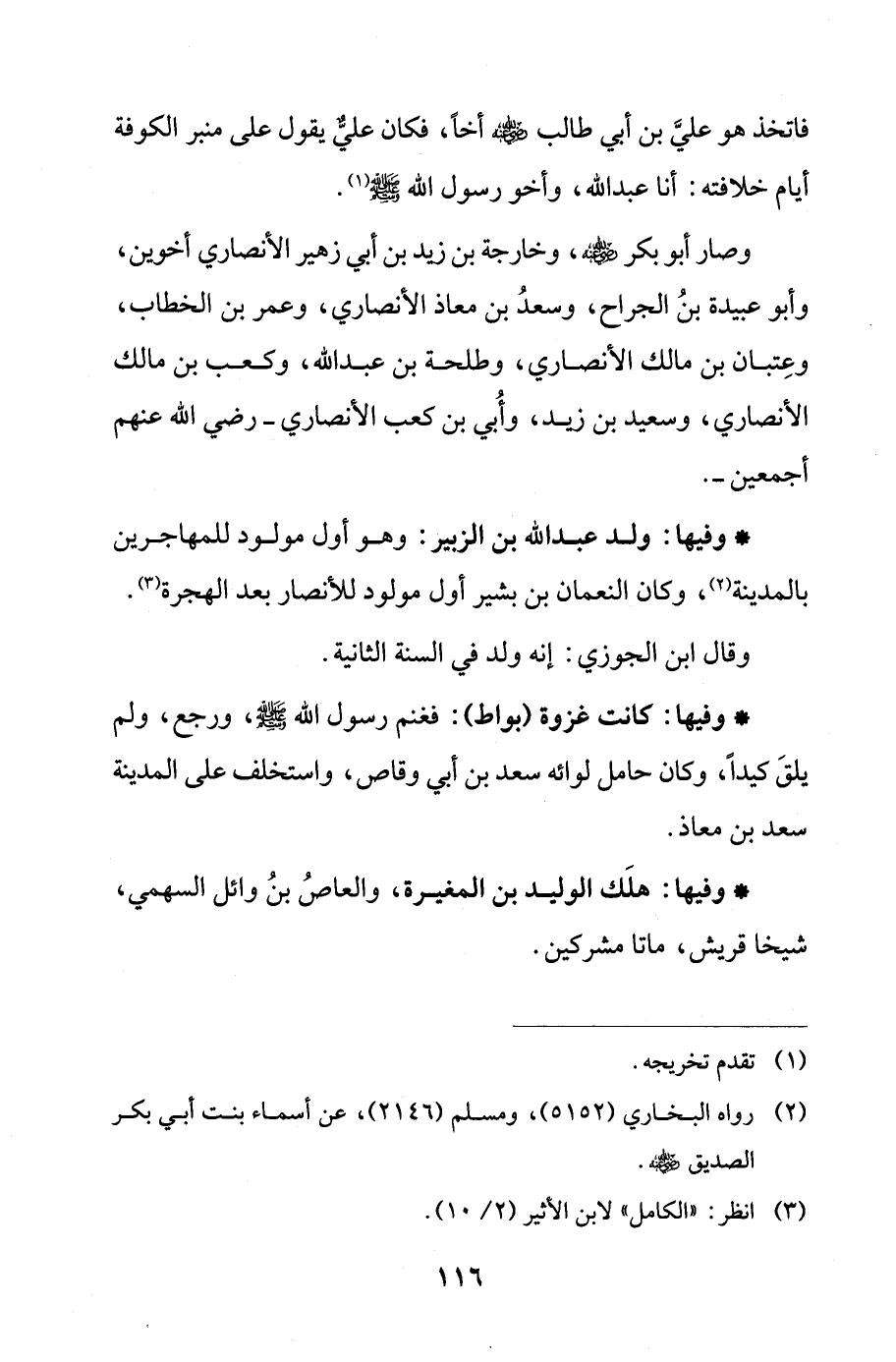 * وفيها: ولد عبد الله بن الزبير: وهو أول مولود للمهاجرين بالمدينة (¬2)، وكان النعمان بن بشير أول مولود للأنصار بعد الهجرة (¬3).
