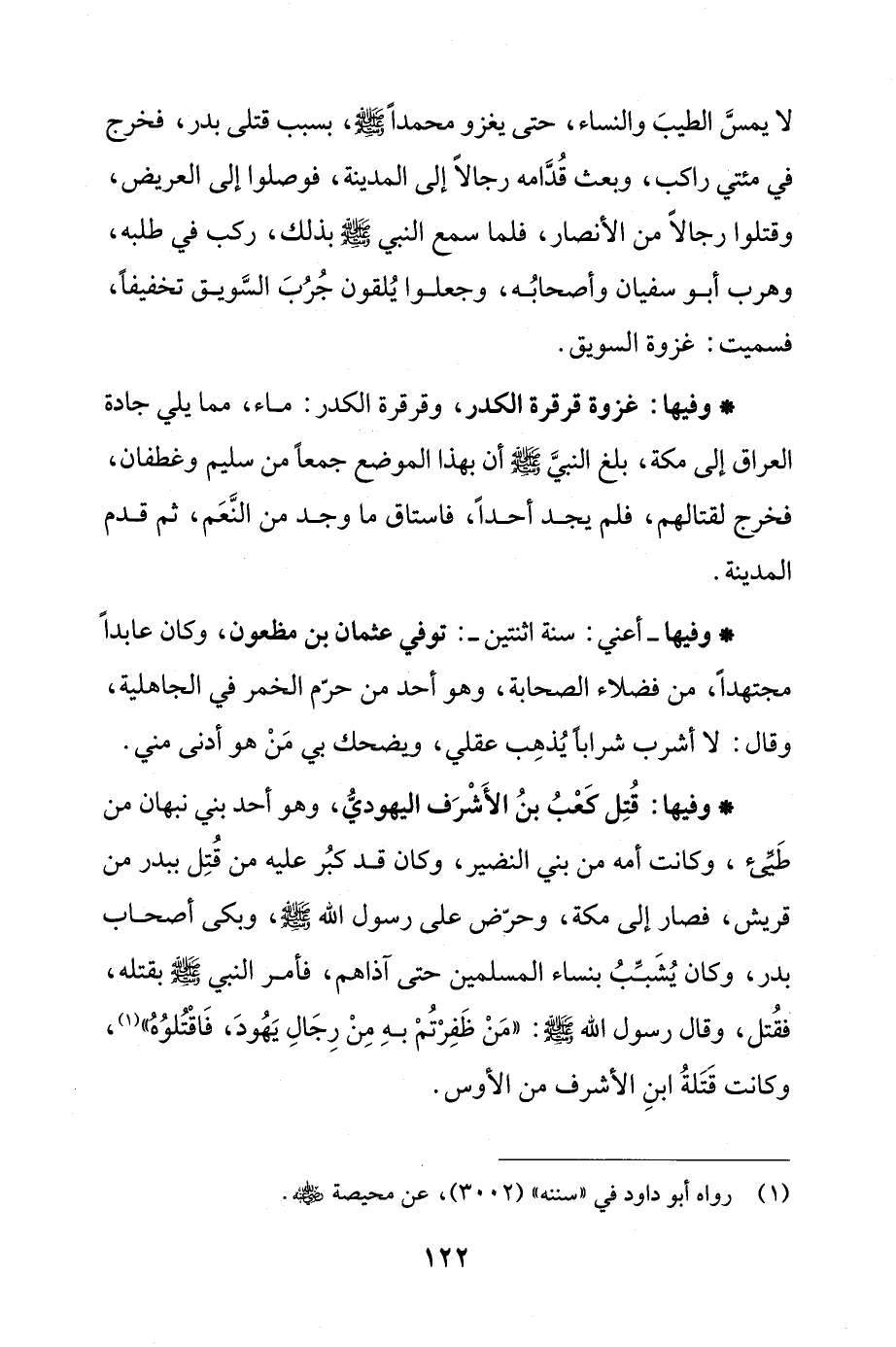 * وفيها: قُتِل كَعْبُ بنُ الأَشْرَف اليهوديُّ، وهو أحد بني نبهان من طَيِّئ، وكانت أمه من بني النضير، وكان قد كبُر عليه من قُتِل ببدر من قريش، فصار إلى مكة، وحرّض على رسول الله - صلى الله عليه وسلم -، وبكى أصحاب بدر، وكان يُشَبِّبُ بنساء المسلمين حتى آذاهم، فأمر النبي - صلى الله عليه وسلم - بقتله، فقُتل، وقال رسول الله - صلى الله عليه وسلم -: "مَنْ ظَفِرْتُمْ بهِ مِنْ رِجَالِ يَهُودَ، فَاقْتُلوُهُ" (¬1)، وكانت قَتَلةُ ابنِ الأشرف من الأوس.