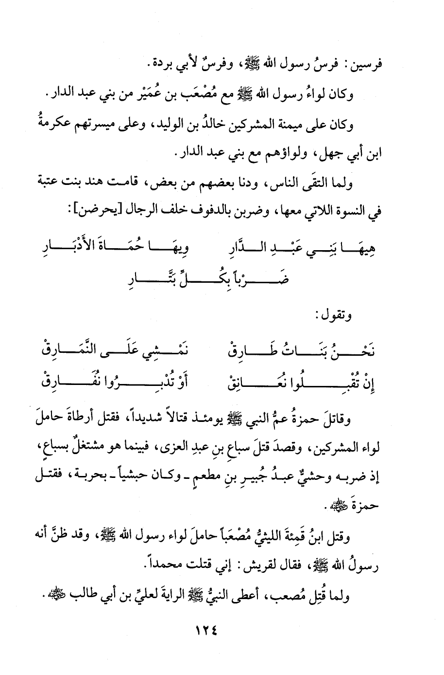 هِيهَا بَنِي عَبْدِ الدَّارِ ... وِيهَا حُمَاةَ الأَدْبَارِ