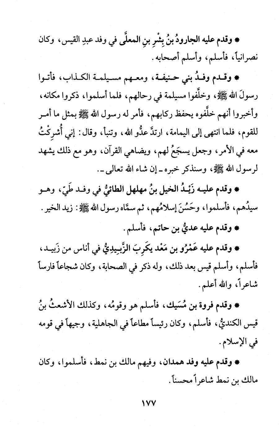 * وقدم عليه زيدُ الخيل بنُ مهلهل الطائيُّ في وفد طَيّ، وهو سيدُهم، فأسلموا، وحَسُنَ إسلامُهم، ثم سمَّاه رسول الله - صلى الله عليه وسلم -: زيد الخير.