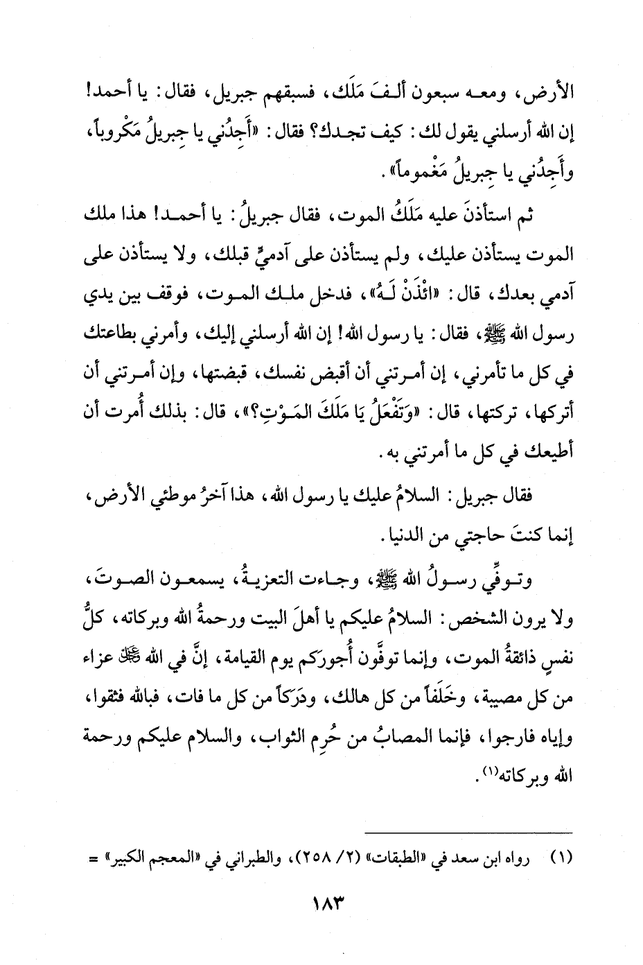 فقال جبريل: السلامُ عليك يا رسول الله، هذا آخرُ موطئي الأرض، إنما كنتَ حاجتي من الدنيا.