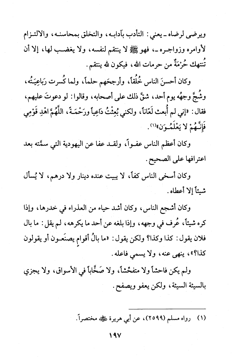 ولم يكن فاحشًا ولا متفحِّشًا، ولا صَخَّابا في الأسواق، ولا يجزي بالسيئة السيئة، ولكن يعفو ويصفح.
