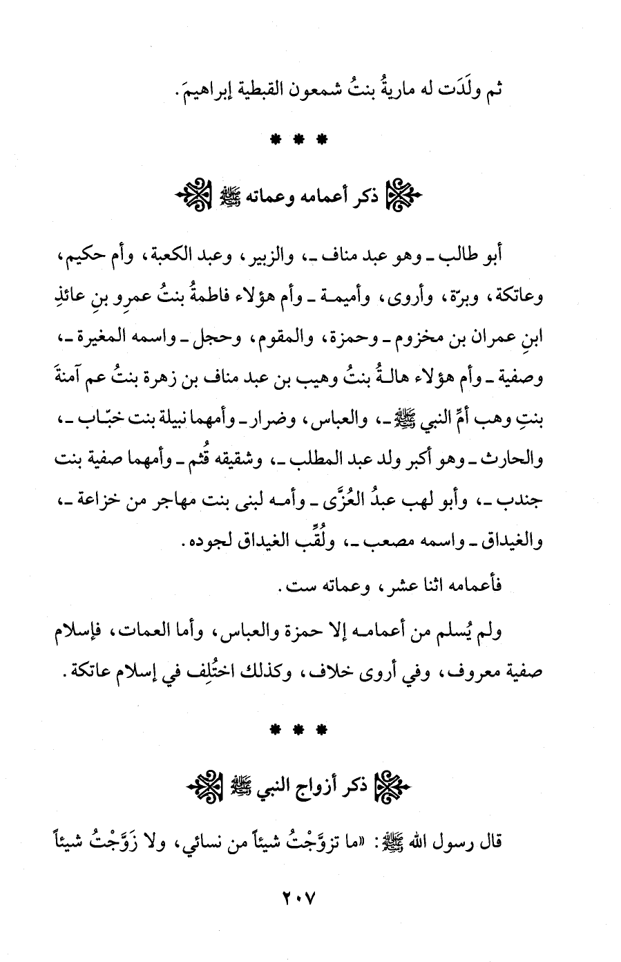 ولم يُسلم من أعمامه إلا حمزة والعباس، وأما العمات، فإسلام صفية معروف، وفي أروى خلاف، وكذلك اختُلِف في إسلام عاتكة.