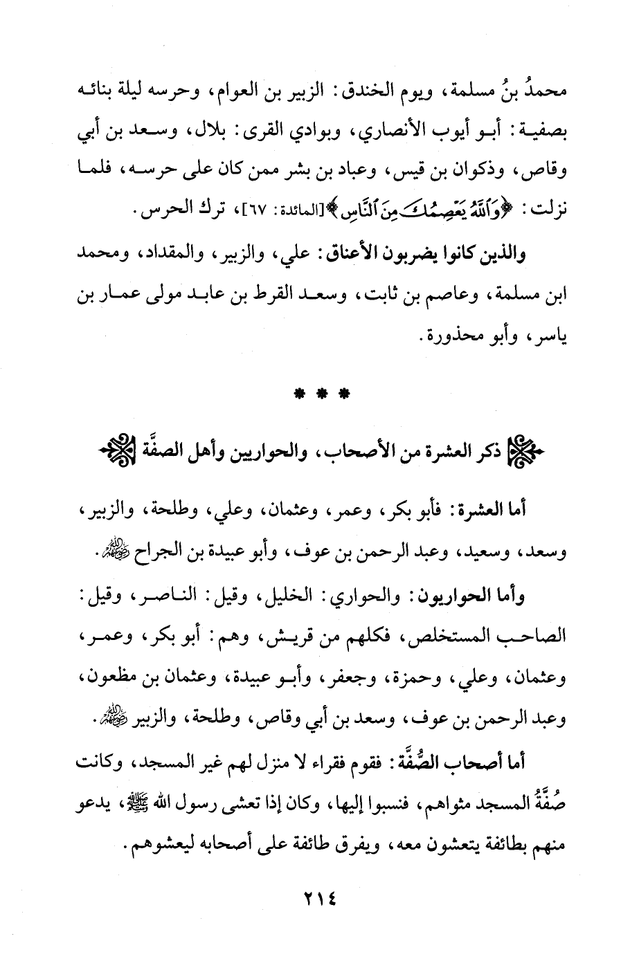 * ذكر العشرة من الأصحاب، والحواريين وأهل الصفَّة *