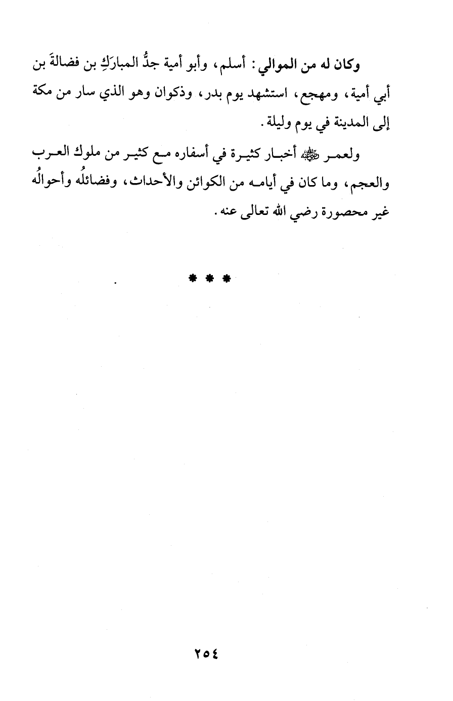 ولعمر - رضي الله عنه - أخبار كثيرة في أسفاره مع كثير من ملوك العرب والعجم، وما كان في أيامه من الكوائن والأحداث، وفضائلُه وأحوالُه غير محصورة رضي الله تعالى عنه.