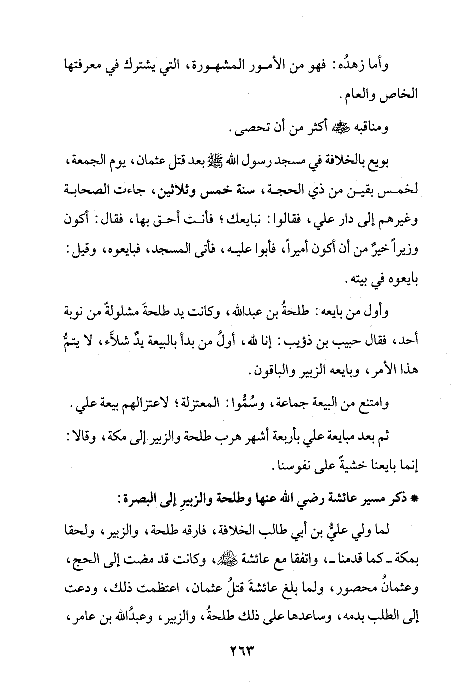 * ذكر مسير عائشة رضي الله عنها وطلحة والزبيرِ إلى البصرة: لما ولي عليُّ بن أبي طالب الخلافة، فارقه طلحة، والزبير، ولحقا بمكة - كما قدمنا -، واتفقا مع عائشة - رضي الله عنهم -، وكانت قد مضت إلى الحج، وعثمانُ محصور، ولما بلغ عائشةَ قتلُ عثمان، اعتظمت ذلك، ودعت إلى الطلب بدمه، وساعدها على ذلك طلحةُ، والزبير، وعبدُ الله بن عامر،