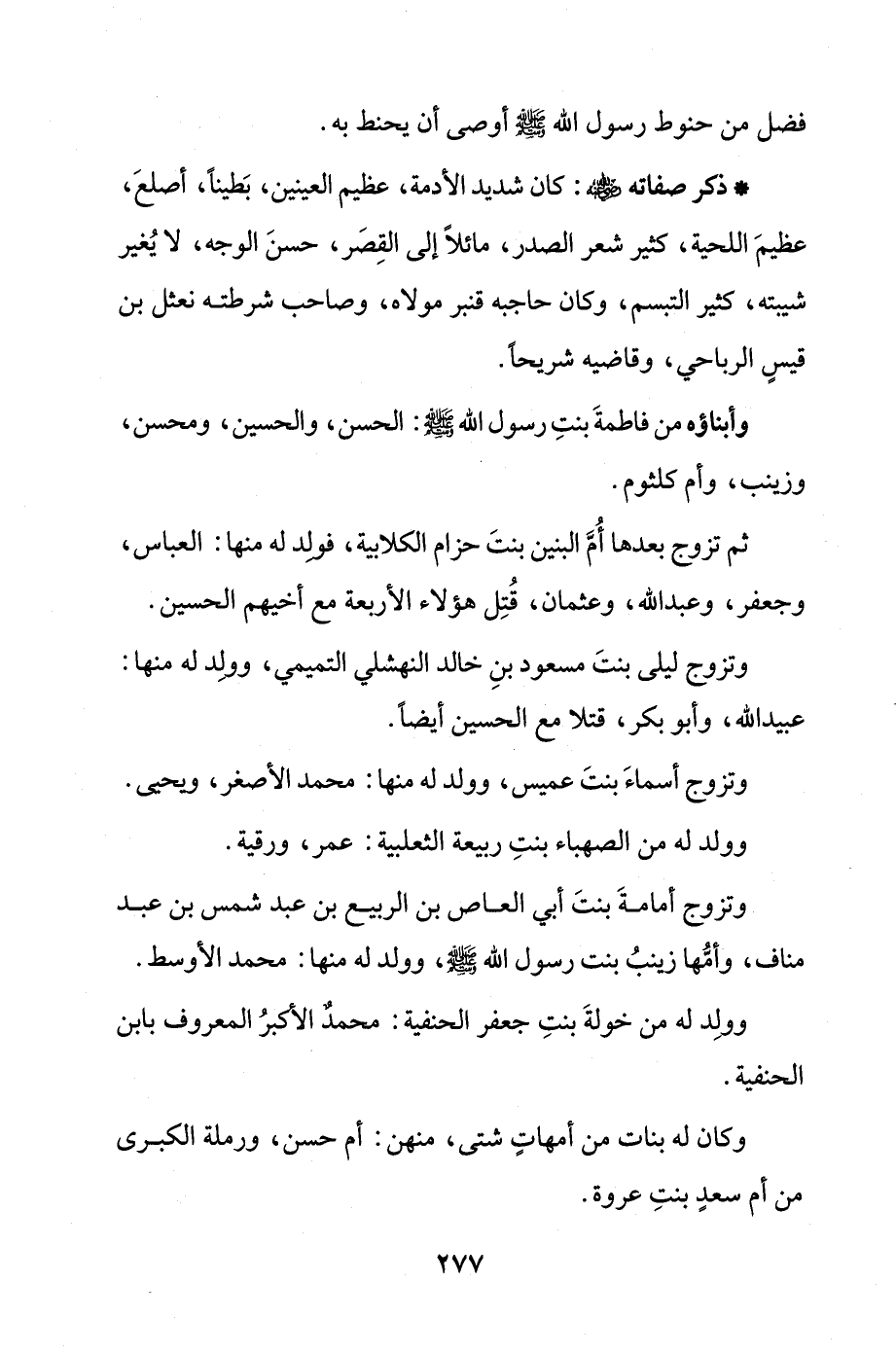وتزوج أمامةَ بنتَ أبي العاص بن الربيع بن عبد شمس بن عبد مناف، وأمُّها زينبُ بنت رسول الله - صلى الله عليه وسلم -، وولد له منها: محمد الأوسط.