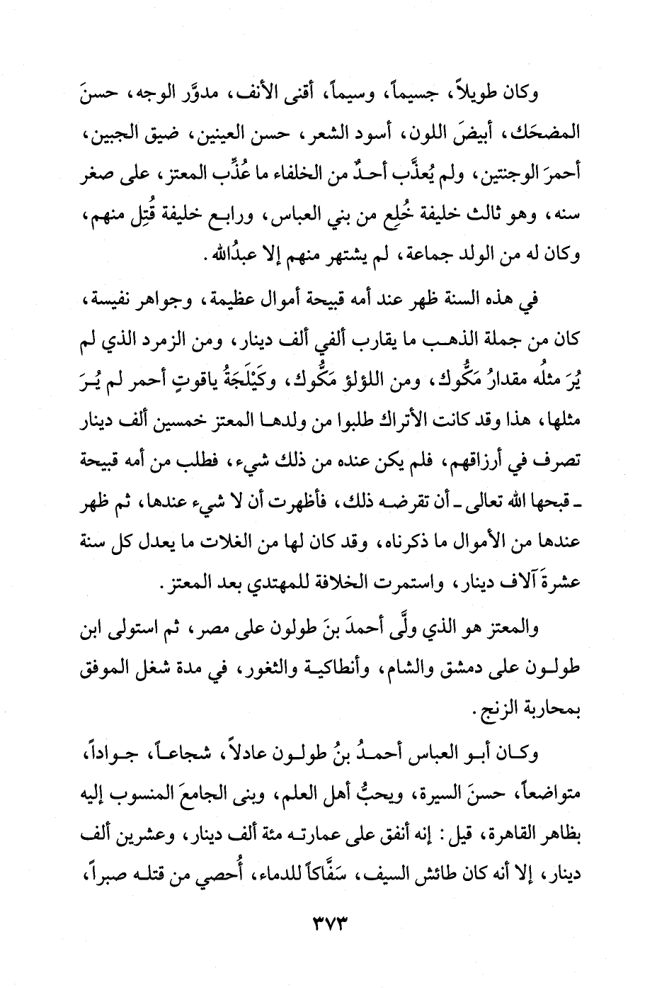 والمعتز هو الذي ولَّى أحمدَ بنَ طولون على مصر، ثم استولى ابن طولون على دمشق والشام، وأنطاكية والثغور، في مدة شغل الموفق بمحاربة الزنج.