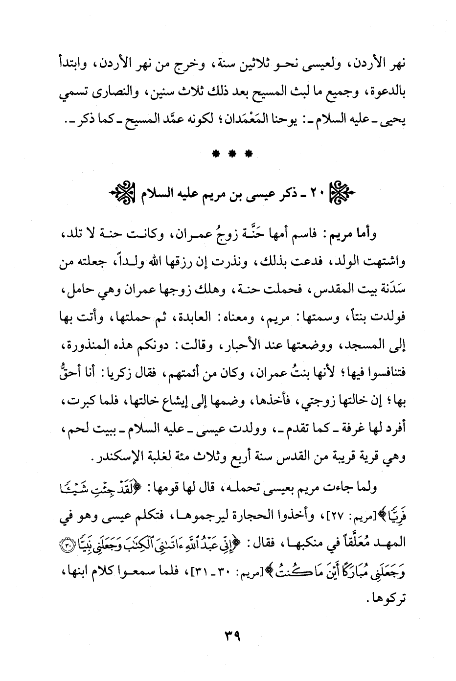 نهر الأردن، ولعيسى نحو ثلاثين سنة، وخرج من نهر الأردن، وابتدأ بالدعوة، وجميع ما لبث المسيح بعد ذلك ثلاث سنين، والنصارى تسمي يحيى - عليه السلام -: يوحنا المَعْمَدان؛ لكونه عمَّد المسيح - كما ذكر -.
