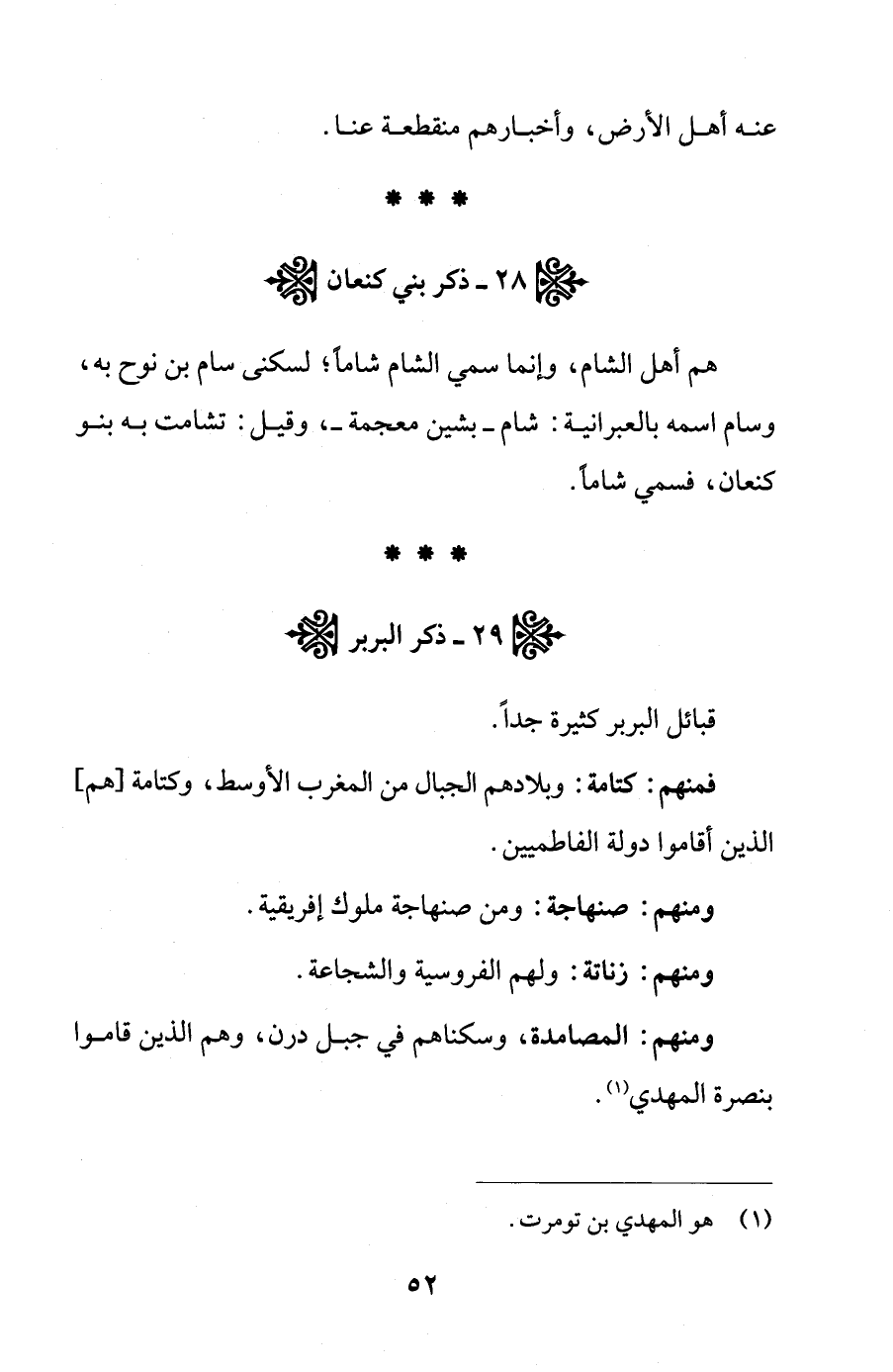 ومنهم: المصامدة، وسكناهم في جبل درن، وهم الذين قاموا بنصرة المهدي (¬1).